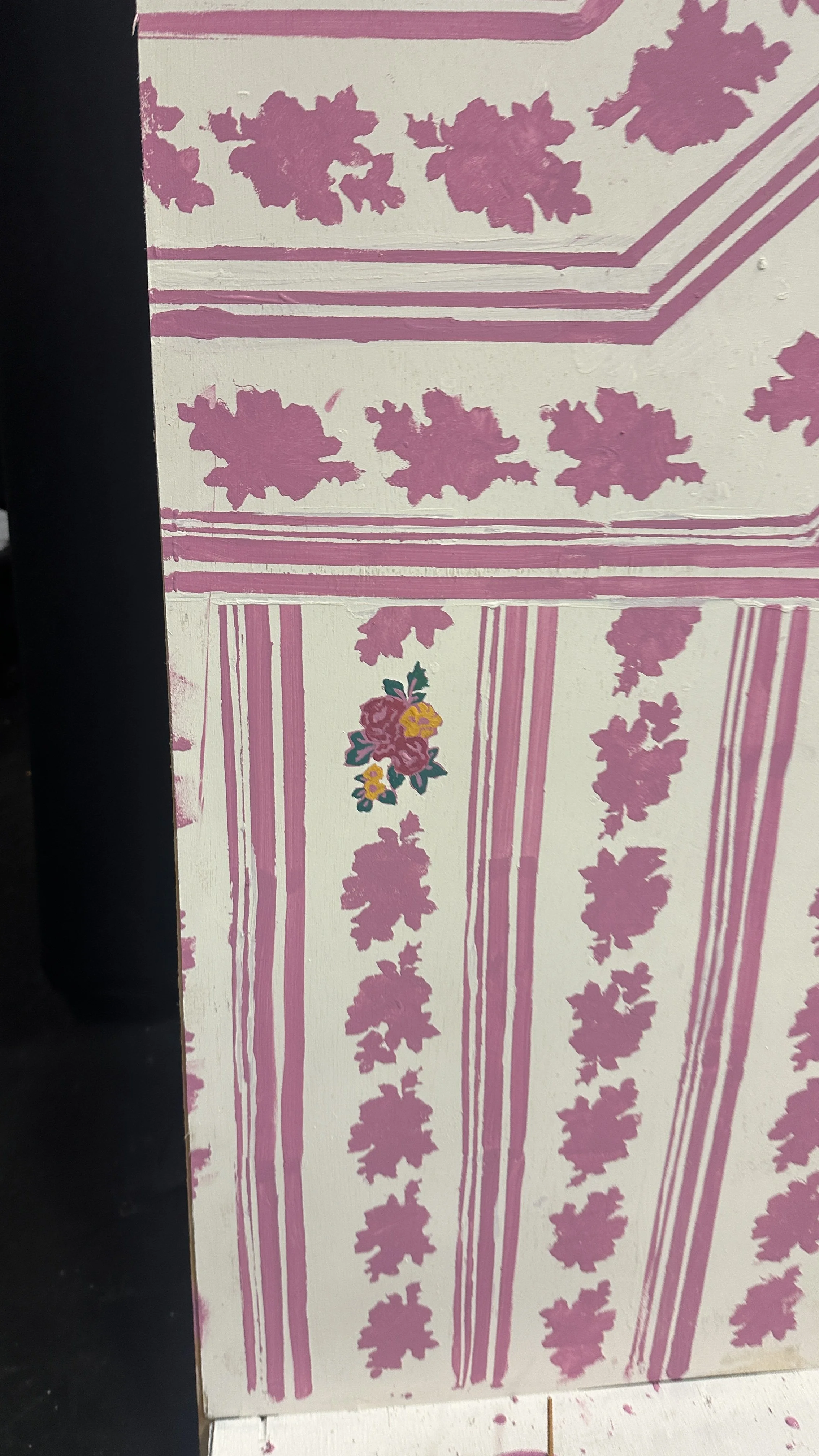 I used stencils that I drew on Procreate and printed on my Cricut based off of inspiration photos given to me by the scenic designer.